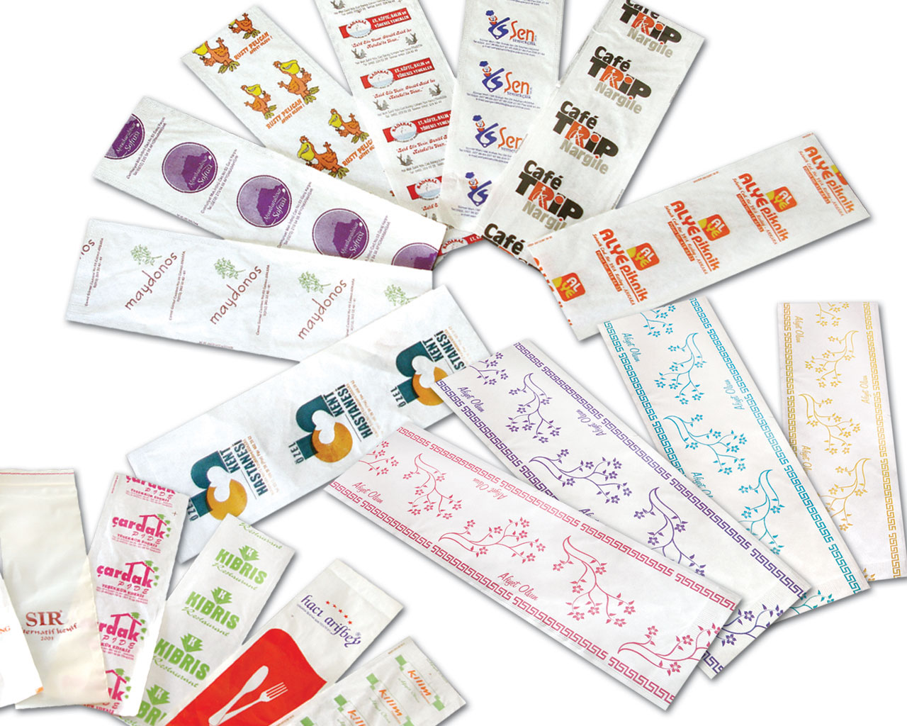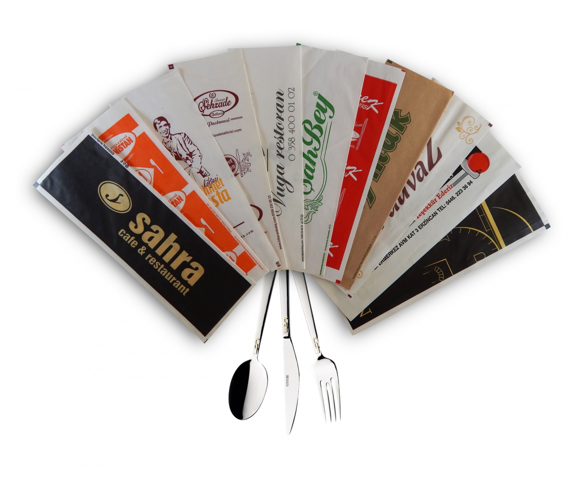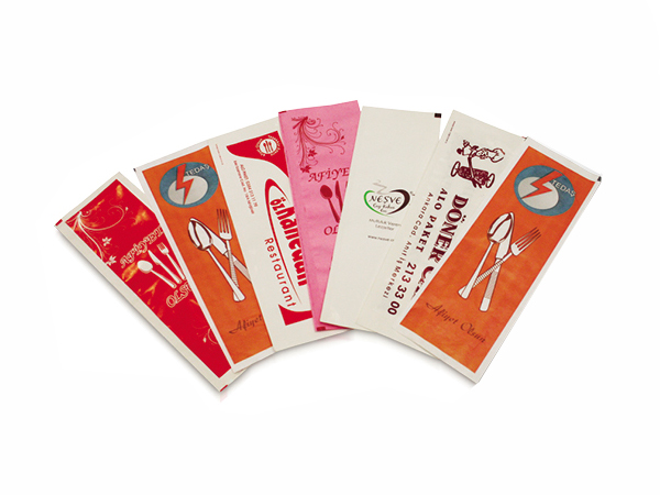 Lokanta, restoran, cafe vb. mekanlarda kullanılan mekan tanıtımı ve müşteriye temiz sunum yapmak amacıyla kullanılan sivas çatal bıçak kılıflarında genellikle tek renk baskı yapılmaktadır. İsteğine göre renk seçeneği iki adete artmaktadır. Firmanızın logosu, adı, adresinin bulunduğu reklam yapabildiğiniz şık bir sunum sağlamak amacıyla baskılı çatal bıçak kılıflarını kullanabilirsiniz.